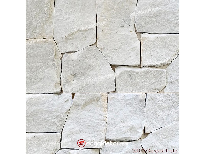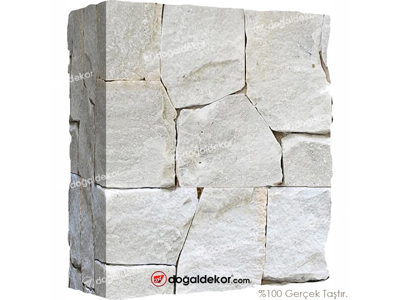Beyaz Mermer Doğal Taş Duvar Cephe Kaplama - Alaçatı Model Rock Face