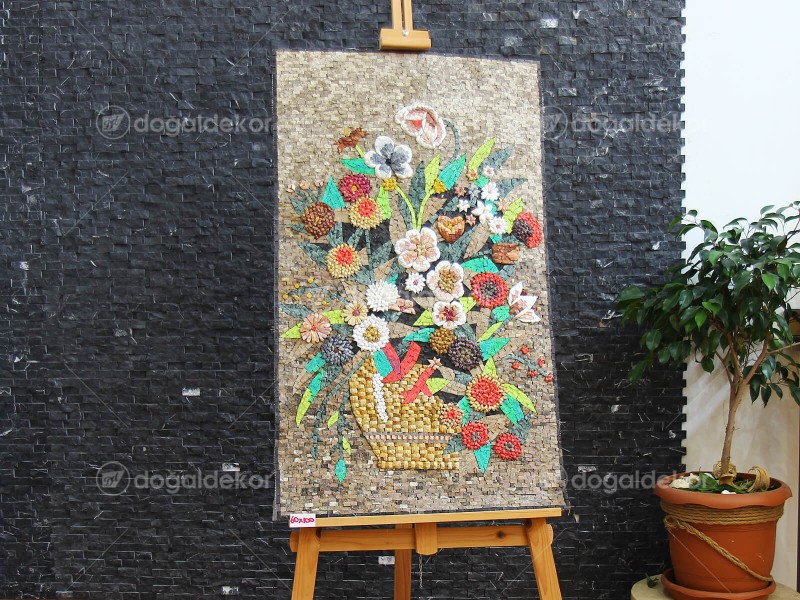 Mermer doğal taş mozaik tablo ile duvarınızı sanat galerisine çevirebilirsiniz. Evinizin bir duvarını solmayan çiçekler ile renklendirin. Duvar dekorasyonu için tasarlanan modern doğal taş tablolar ister çerçeve ile istenirse direk duvara yapıştırılarak kullanılabilir.