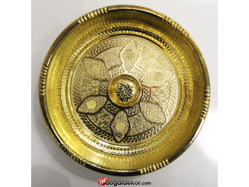 20.5 cm Çapında Sarı Osmanlı Tuğra İşlemeli Hamam Kurnası Tası